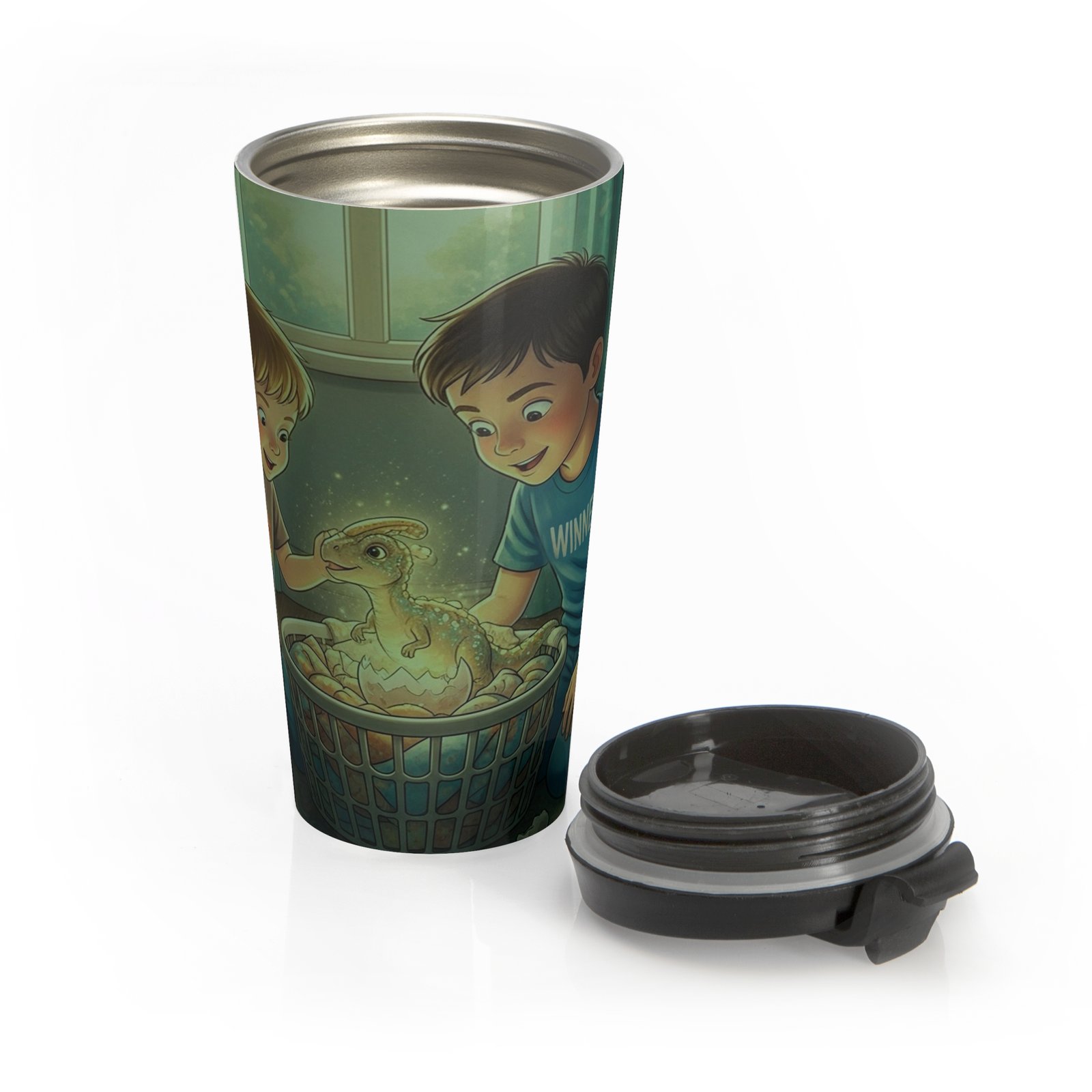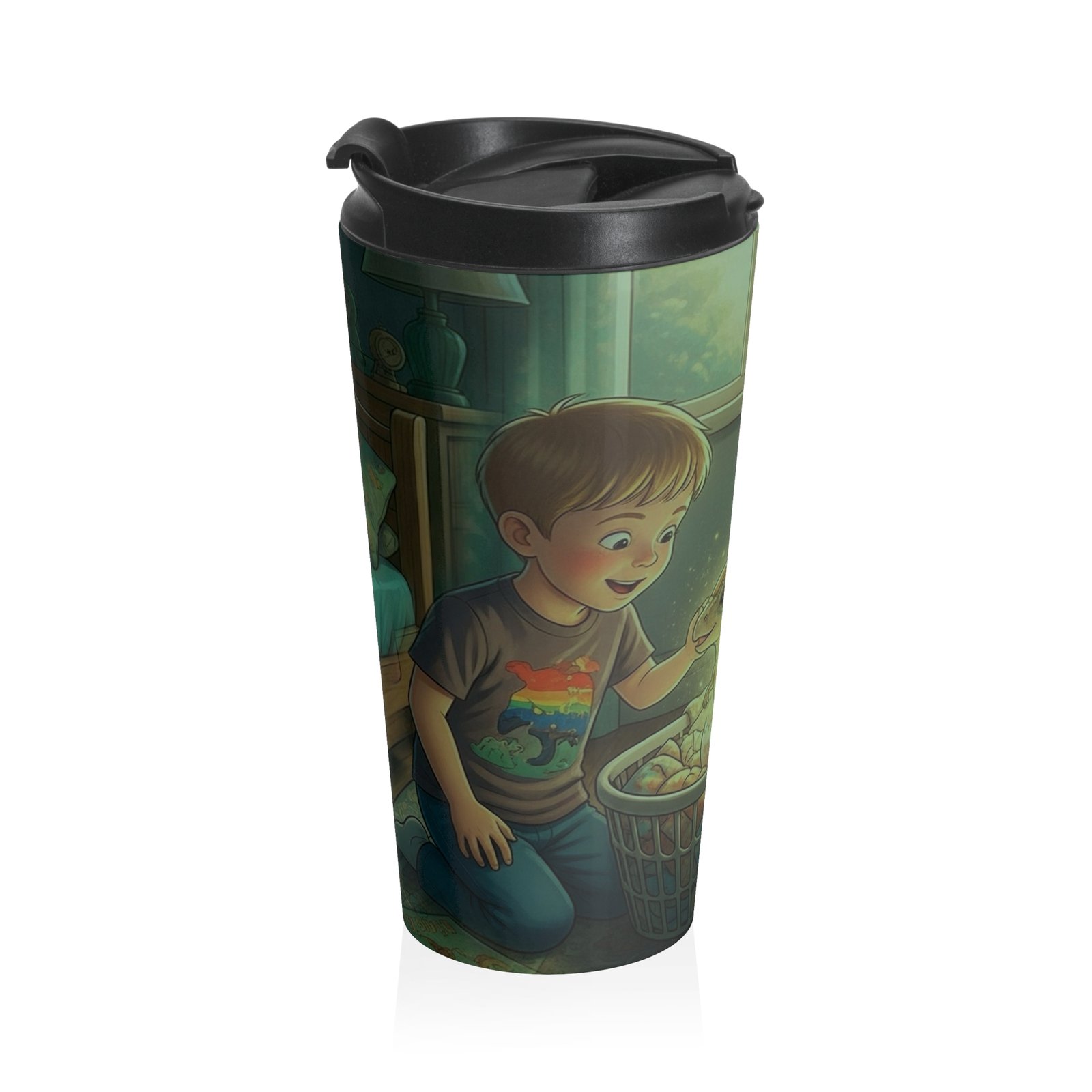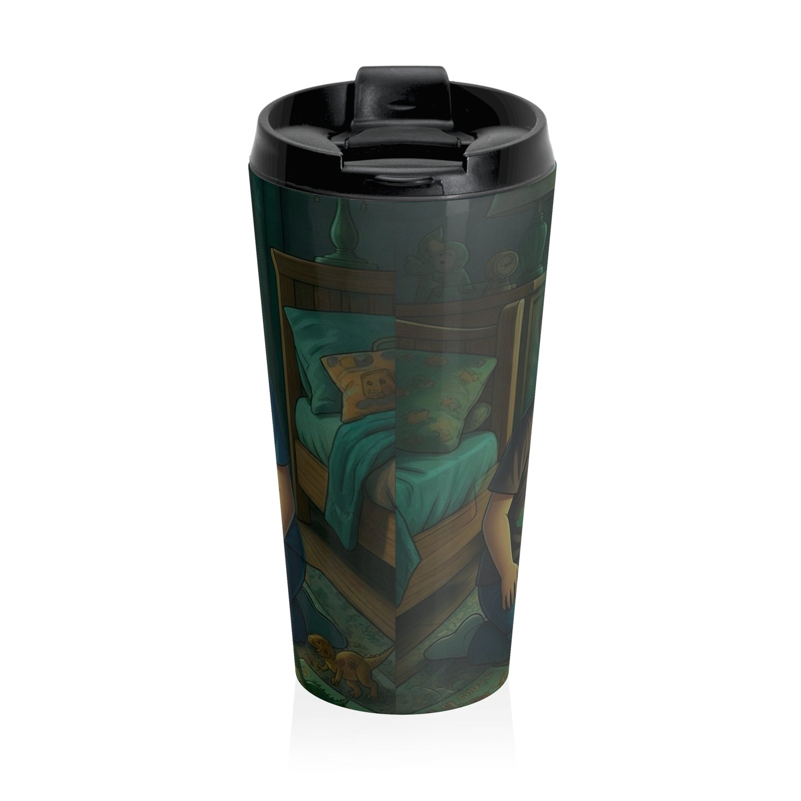 This stainless steel travel mug carries a quiet, warm moment — two kids peeking into a softly lit bedroom, curious and full of wonder. The wraparound illustration invites a sense of home, childhood adventures, and bedtime discoveries. It sits easily in a hand or cup holder, keeping your drink steady while you move through a morning commute, a school run, or a slow weekend at home. The durable, vacuum-insulated body keeps beverages at their best, while the BPA-free, leak-resistant lid gives peace of mind when you’re juggling a tote, a stroller, or a backpack. Small visual details — the glow from the lamp, the boys’ eager expressions — make this mug feel like a tiny story you can carry with you every day.